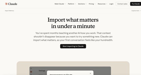Golpe de efecto antrópico. tan antrópico ha sido sacado de la manga una nueva característica para facilitar la transición de otros modelos de IA, como ChatGPT o Gemini, a Claude. Porque si has estado usando ChatGPT por un tiempo por ejemplo y ya te conoceempezar de cero es un paso atrás en todos los sentidos. La nueva función te permite importar toda tu memoria de otros modelos a Claude para que sepa inmediatamente todo sobre ti (todo lo que tu IA anterior ya sabía). Ya no se empieza de cero.