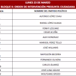 Habrá cuatro bloques en cada jornada electoral. En primer lugar, los candidatos tienen la oportunidad de presentar sus propuestas durante 1 minuto y 2 minutos y medio para hacer comentarios y preguntas.