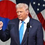 El presidente de Estados Unidos, Donald Trump, hace un gesto mientras habla durante la cumbre de directores ejecutivos del Foro de Cooperación Económica Asia-Pacífico (APEC) en Gyeongju, el 29 de octubre de 2025. (Foto de ANTHONY WALLACE / AFP).