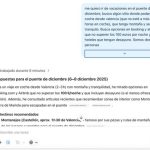 Le pedí que me buscara lugares para hacer una escapada el puente de diciembre, que estuvieran a menos de 2 horas en coche de Valencia, con un presupuesto concreto y que los buscara en Booking y Airbnb. En seis minutos me dio opciones para dos destinos diferentes.organizados en una tabla con precio por noche y destacados. Una vez que lo he decidido, sólo tuve que darle los datos personales para completar la reserva.