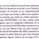 Afirmó que los abogados que se incorporaron al colegio depositaron en las cuentas de Balcázar la suma de S/ 1510 en concepto de matrícula escolar. «Lo que no sabemos es qué hizo con ese dinero», dijo.