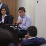 Cristian Martínez, el conductor de la Presidencia, declara en el juicio a Pedro Castillo, Betsy Chávez y otros por el golpe. Foto de : Alessandro Currarino