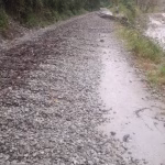 La concesionaria informó preliminarmente la caída de un deslizamiento de tierra aproximadamente en el PK 115+200 en la zona de Mandor, afectando gravemente las vías. (Indeciso)