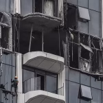 Daños tras el supuesto impacto de un dron contra un edificio en el puerto Creek de Dubái el 12 de marzo de 2026. (Foto de AFP).