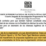 En el escrito dan cuenta y adjuntan la sentencia emitida por el TC que resolvió la vulneración del principio de legalidad para el caso de lavado de activos en la modalidad de receptación patrimonial y vulneración del principio de tipicidad en el caso de crimen organizado, atribuido a Fujimori Higuchi.