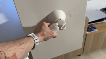 Que la puedas llevar de un lado a otro mola mucho, pero además está el hecho de que, como digo, la batería no está en la base. ¿Qué implica esto? Pues que puedes quitar la pantalla del brazo (pulsando un botón) y seguir funcionando.