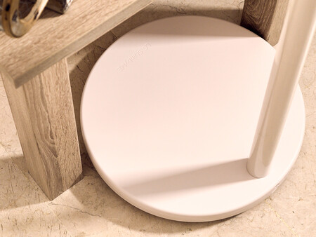 Es tremendamente sencillo de montar (cuatro tornillos para anclar el brazo a la base y un sistema de agarre fácil de ‘clic’ para unir la pantalla al brazo. En un principio pensé que la batería iba en la base, pero resulta que no: aunque se puede cargar directamente con un cable que conectamos a la base, la pantalla es donde está la batería.
