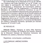 Designado Ministerio de Justicia y Derechos Humanos (Minjusdh) Willy Ramírez Chávarryex miembro del parlamento Jurado Nacional de Elecciones (JNE)como director de la Oficina de Derechos Humanos.