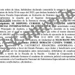 «Request for international court assistance execatur to the competent authorities for the Andorra Principality is available, so that they do what is determined in the above sentence, where the rights of EUR1´041,486,881, plus the interests of the judgment. Finance SA and the economic rightholder Jorge Horacio Canepa Torre, who were moved to I ‘Auteita Financiera Andorrana (grandfather) and left behind for the Peruvian Estado.