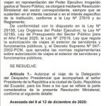 El Presidium del Consejo de Ministros (PCM) autorizó el viaje de una delegación de la Presidencia que acompañará al Presidente. jose jeri a Quito para Reunión presidencial y XVI gabinete binacional de Perú y Ecuadorque estará compuesto por 13 personas.