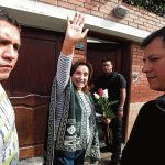 Lima, 11 de octubre de 2025 La expresidenta Dina Boluarte salió a saludar a sus seguidores que acudieron a su casa y le brindaron su apoyo. Fotos: Violeta Ayasta/@photo.gec