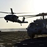 Fotografía de archivo de helicópteros MH-60 de Estados Unidos, que mantienen un despliegue militar cerca de aguas venezolanas. Foto: EFE/Mazen Mahdi